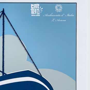 Created by Cuban graphic artist Claudio Sotolongo, this E La Nave Va film poster draws on the legacy of the celebrated Cuban film poster tradition, a globally recognized design movement distinguished by its bold graphic language and conceptual depth. This limited-edition silkscreen print was inspired by E La Nave Va (And the Ship Sails On), the 1983 film by Italian director Federico Fellini.