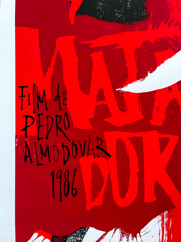 Unlike mass-produced film prints, this Matador Almodóvar silkscreen poster follows a visual language rooted in artistic interpretation rather than commercial branding. This design approach, characteristic of the post-revolutionary Cuban film poster, privileges metaphor, minimalism, and bold color over literal imagery, offering an evocative tribute to Almodóvar’s complex cinematic vision.