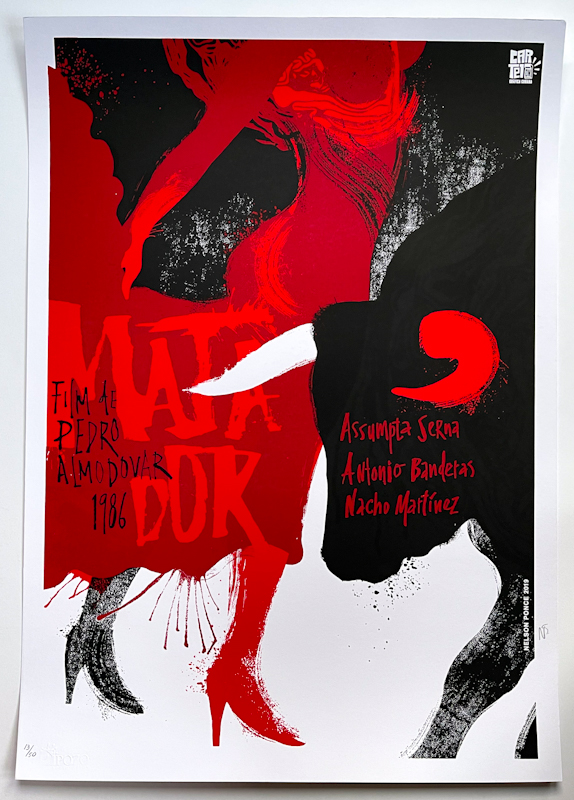 The Matador Almodóvar Silkscreen Poster is a rare, collectible print honoring Pedro Almodóvar’s 1986 neo-noir cinema masterpiece. Designed by Cuban artist Nelson Ponce, one of the most innovative voices in contemporary Cuban graphic design.