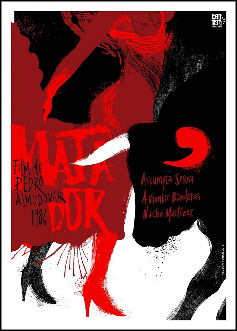 Matador remains one of Almodóvar’s most provocative films, blending eroticism, violence, and melodrama in ways that challenged the conventions of Spanish cinema in the 1980s. Nelson Ponce’s poster channels this tension into a striking visual form that invites repeated viewing.
