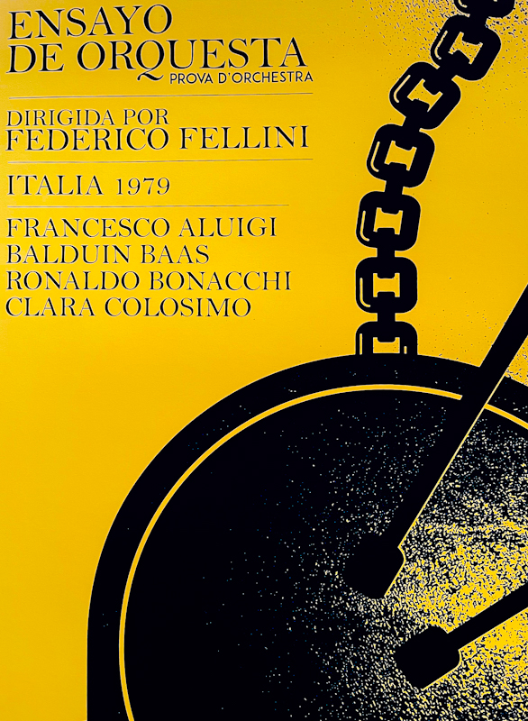 This Prova d’Orchestra poster is ideal for collectors of international cinema ephemera and postwar screen printing. Explore more of our Fellini poster collection.