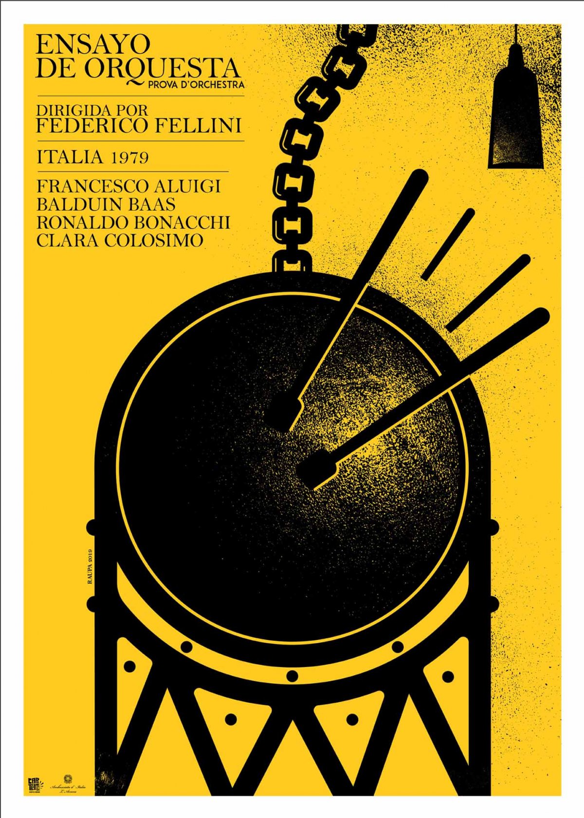 The design reinterprets the film’s thematic tension through the bold visual language of Cuban poster art, an influential tradition recognized by UNESCO’s Memory of the World programme for its cultural significance. This limited edition Prova d’Orchestra poster pays tribute to the enduring legacy of the film poster that still inspires both established and up-and-coming designers from the island and all over the world.